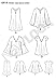 Dress patterns are close-fitting through the bust and can be made with sleeve and length variations, side pockets, and a back zipper.