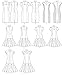Includes sewing templates, instructions, fabric recommendations, pattern pieces, and sizing guides for (3) knee length dresses and (1) ankle length dress.