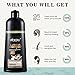 Long Lasting Black Shampoo:16.90 Fl Oz black shampoo is available for around 10-15 applications,very economic.What's more,the natural black hair color can last up to 3-4 weeks until gray shows.The hair coloring shampoo only hangs on to the surface of hair shell, much safer for your hair as well as your skin.