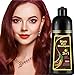 RED HAIR DYE SHAMPOO 3 IN 1 : Different from other chemical hair dye colors,this hair dye shampoo cleanses, colors and conditions hair just in one step,which invigorates your scalp,fortifies hair from root to tip,and maintains overall vigor for your hair.