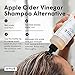 Don't Over-Shampoo; Our Apple Cider Vinegar Hair Rinse removes impurities without stripping the natural oils that are essential to the health of your scalp and hair; Shampoo less at home; Add ACV to your routine for a clean and soft head of hair