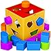 Shape Sorting Toy: Sort all the shapes into the cube, retrieve them through the opening, then do it all over again!
