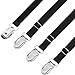 STABLE AND ADJUSTABLE HOLDING. These sheet holder straps are durable elastic straps that have a three clamp triangle design. The nickel plated clamps are rust proof and durable. Each clip sheet has an adjustable, high-quality band with a lock system. It allows appropriate tension to clasps the corners of the sheet tightly. Our package is a set of four bed bands for sheets with black or white color variation.