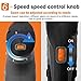 Variable-speed dial for controlled material removal on different materials while using this small electric sander