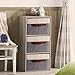 Practical Design: With its simple foldable design, the storage boxes stand firm and upright when used and can be collapsed and stored away instantly when not in use.Warm neutral color choices will also complement and match with all cabinet colors.