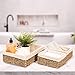 DURABLE DESIGN — Made of seagrass + metal — Removable fabric lining inside — Natural color — Lightweight yet durable — Spot clean — Approximate Measurements (1) 12.6” L x 9.25” W x 4” H ; (2) 7.87” L x 5.50” W x 3.5” H