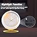 【Touch Control Multicolor Night Light】Illuminate your space with a touch of soft and warm glow with the wake up light sunrise alarm clock. The color-select function allows you to automatically cycle through seven different light colors or choose your favorite from white, red, yellow, green, blue, indigo and purple LED colors to fit any decor, occasion or mood with just the click of a button. Five brightness are available to customize the light to meet your needs