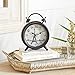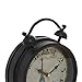 FEATURES ROUND CLOCK: Table clock features an analog face with line markings and a swing style design