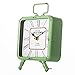 Twin bell analog alarm clock in a beautiful retro Pistachio green. Easy to read with classic black numbers & hands on white background. Quality metal case, bells, hammer and legs designed to withstand daily handling. Glass lens can be cleaned easily with a soft cloth