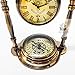 Handmade Brass Table Clock - Vintage look Nautical Antique Desk / Shelf Watch with a Brass Compass.
