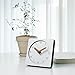 FEATURES SQUARE CLOCK: Square table clock featuring clean and minimalist white clock face with black line markings