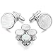 QUALITY CUFFLINKS FOR MEN: Mother of pearl cufflinks and studs silver-tone round tuxedo formal set with presentation gift box by Cuff-Daddy. Rich natural mother of pearl is cut to size and dropped into a triple concentric ring silver-tone setting. The men cufflinks choice materials and design give it a borderline executive appeal.