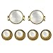 The classic circular design features a smooth golden color outer edge with a white faux stone in the center, giving the shirt a perfect finishing touch. A solid toggle post ensures cufflinks stay fastened to the shirt cuffs. The complete set includes 4 studs for the front and 2 cufflinks for the sleeves.