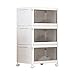 【Preferred Material,Thick and Durable】The shoe boxes clear plastic stackable are made of quality thick PP plastic,with stable load bearing,no deformation,no shaking.And it is folding design,you can easily fold and store them,saving space,easy to move.The frame construction adopts all-in-one design,quick assembly,save time,but one tall 3-tier frame also means the bins have to be stacked,you can't use it as three individual storage bins.