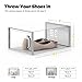 Throw Your Shoes in: Each shoe case bin size 13”L× 9”W × 5.5”H Inch, fits various types of shoes up to US 9; Heels, flats, sneakers, flip flops, sandals, wedges, all shoes are welcomed in this shoe storage.