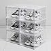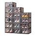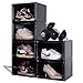 STACKABLE AND CONNECTABLE - The shoe boxes can be stacked vertically to optimize your room. These shoe storage bins can also be connected horizontally for a sturdier and more organized display. No more worrying about wobbly shoe boxes!