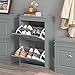 Two Flip Drawers For Easy Access To Shoes - This shoe storage cabinet features two flip drawers plus a very convenient open storage area that is ideal for walking accessories, car keys or dogs leads, this hidden cabinet conveniently conceals your shoes. It features a removable divider in each compartment , you can choose to keep or remove the panel according to the size or style of your shoes.