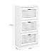【SUFFICIENT STORAGE SPACE】: Overall sizes: 23.6”W x 9.4”D x 45.5”H. This multifunctional shoe rack with 3 flip drawers, 2 tiers in each drawer(The middle board can be removed). From then on, bid farewell to the messy shoes in life.