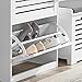 👞SUFFICIENT STORAGE SPACE:This shoe storage cabinet has 2 fold-out doors,2 tiers in each drawer.The compartment in the middle of each flip drawer can be adjusted or removed to fit different heights shoes and shoes can all be neatly placed inside!