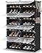 【LARGE CAPACITY 9 TIER SHOE RACK】: The shoe rack organizer can hold 50-55 pairs of shoes, keeping your limited space organized. Shoe racks of different heights are designed to fit boots, heels, shoe boxes or other larger accessories. shoe organizers and storage for closet comes with 10 multifunctional hooks, you can hang a lot of things on it. And with 3 PP sheets, it is waterproof and easy to clean. What a convenient design.