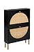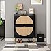 ✅ 【Large Storage Space】 -The shoe rack cabinet with handmade rattan decorated doors features a spacious top and 2 large flip drawers, the large top platform can hold photo frames or wallets. And multifunctional shoe rack with 2 flip drawers, 2 tiers in each drawer(The middle board can be removed). Easy to storage different style shoes.