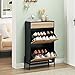 🥾【Flip Down Design】There are 2 flip hidden drawers with a space-saving pull-down design that is easy to open and close and keeps your shoes away from the dust. Additionally, you can adjust the height of the shoe rack according to the size of your shoes. At the bottom of the shoe cabinet is a shelf to put commonly used shoes, easy to change.