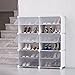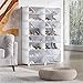 [Easily view inside] The clear doors and side panels of cabinet, make it easy to see all your heels or sneakers, and retrieve the ones you want without fussing with boxes stacked on top of each other. Each roomy display box fits max men's size of 12, 20 cubbies supply large capacity, this shoe rack for closet can help you save more space.