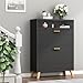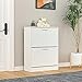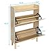 Sufficient Storage Space - This shoe storage cabinet equipts 2 fold-out drawers and spaciaous top surface. The compartment in the middle of each flip drawer can be adjusted or removed to fit different heights shoes, reduce clutter