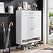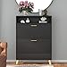 Space-saving Shoe Storage Solution: This shoe cabinet features two flip drawers and one storage drawer, offering ample space for your shoes and daily essentials. Its slim design allows it to fit perfectly in small spaces.