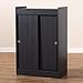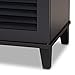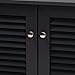 Two shoe cabinet doors; each holds six pairs for an approximate total capacity of twelve pairs