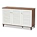 【Stable & Solid Construction】This shoe cabinet is constructed with metal handles and eco-friendly particleboard and all-wood legs. High-quality waterproof surface easy to clean and maintain, durable. Shoe storage cabinet with 2 sliding doors design allows you to easily hide your shoes to reduce clutter, and isolate dust.