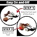 EASY TO USE : Extremely easy to put on and take off.Pull front rubber strapping over shoe toe and back strapping on heel and fasten strap. Compact but steady!