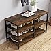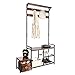 [An Industrial Twist on Storage] Pairing style with function, the matte black frame and rustic brown panels of this coat stand with shoe storage will elevate your living room, hallway, dorm, or corridor