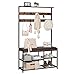 STYLISH AND CLASSIC-Using the classic combination of black and brown, a stylish industrial-style entryway coat rack shoe bench is made of metal and MDF. Classic and simple style, which is suitable for your entryway, living room.