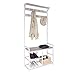 【STURDY AND STABLE】Premium robust heavy duty iron tube frame.Thick wooden chipboard. Anti-toppling screw are included to ensure safe use. Anti-slip foot pads at bottom make this hall tree stand stable on uneven ground.