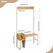 FUNCTIONAL DESIGN: This retro industrial inspired entryway bench with coat rack brings form and function together. Its white frame is complimented with natural oak look wood accents for a soft modern look.