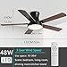 Dual Mount & Easy to Install: Most functional components of this low profile ceiling fans has been assembled, you can finish the installation within an hour. We suggest it installed by an electrician for your safety. And we also provided a 5” and a 10” downrod so that the modern ceiling fans can be mounted both for low ceilings and high ceilings. In Addition, the flushmount ceiling fans also can installed on sloping ceiling (≤15°)