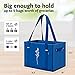 Organize As You Shop with Larger Capacity– Shop easier by placing 2 extra-large shopping bags in your shopping cart and organize purchases as you go. Separate your delicate bread or eggs and produce from your frozen meats and heavy drinks. Take advantage of the versatility and place them in your car trunk as organizers for miscellaneous items or use as laundry baskets, storage bins, utility bags, food delivery bags, or even Christmas gifts! Storage capacity - 8.3 Gallons. 16” W x 12” H x 10” D.