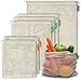 🍏 MULTIPURPOSE EASY TO CLEAN MESH BAGS: The reusable produce bags with their variety of size are very versatile. Use them at farmers market, as vegetable and fruits bags, to store the bulk of assorted bigger grains or dried legumes or for your home storage. They are great for school lunches, beach trips, camping, toy storage or to organize your laundry or suitcase when travelling. There are no toggles which makes them safe for Washing Machine. Just use the gentle cycle with low temperature.