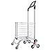 STURDY METAL CONSTRUCTION:The laundry cart with wheels is made of high-quality aluminum alloy and bearings to protect your use and run smoothly and quietly. When you use it on rough roads, don't be afraid. It can bear up to 88lbs.Go upstair for 44lbs. The weatherproof material of the shopping carts bags keep contents dry from the rain, snow and the other forces of nature.