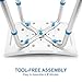 ASSEMBLES IN MINUTES – TOOLS FREE ASSEMBLY. Push button - snap together design requires no tools and assembles and un-assembles in just minutes. Great for storage or travel.