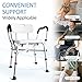 COMFORT / CONVENIENCE / SAFETY: The removable armrests make it easy for users to get in and out of the tub or shower, while the padded seat, backrest, and arms provide added comfort during use. The suction-style tips on each foot provide a secure grip on the bath floor, preventing slips and falls. A great shower seat for inside shower. A great bath & shower safety seating solution. A shower chair for bathtubs. A handicapped shower chair shower bench