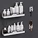 【Powerful Adhesive & Strong Load Capacity】Forget holes, screws, and nails. Our water-resistant adhesive strips allow for placement on many smooth surfaces, including glass, mirrors, tile, etc. Each heavy-duty shelf can easily hold your shower supplies up to 30 lbs.