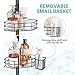 【Special Design- 4 large shelves & 3 kinds removable accessories include 1 Toothbrush Holder & 2 Hooks & 1 towel bar】- Include 4 Wire storage baskets, it is an Ideal for contain bath supplies like shampoo, soap, conditioner, body wash. And 1 small removable basket can storage toothbrush, toothpaste and other small accessories. And 2 Removable hooks for razor and sponge.