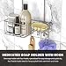 【5 Hanging Shower Organizer Set for Sufficient Bathroom Storage Space】The bathroom organizer comes with 5 pieces for different uses, including 2 shower caddies, 2 soap holders,1 toothbrush holder and 5 adhesives. Accommodate wash supplies or cooking seasonings easily with large capacities to make full use of space and facilitate your life; ideal for the dorm/bathroom/kitchen/toilet/tool room.