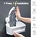 【One Second Installation】The Shower Caddy needs NO tools, NO drilling, NO screws and NO glue. Just need to press the suction pad against the wall, then the installation it's done. Make sure the surface of the wall is dry and clean before installation. Fully removable, reusable and cause no damage to your wall.