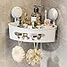 【Drainage Bottom & Adjustable Buckle Design】 - Shower caddy corner with drainage bottom keeps things like shampoo, shower gel, conditioner and facial cleaner air dry quickly and clean. With a back-located adjustable buckle, to avoid ceramic tile gap. The suction cup shower caddy makes every corner turn tidy!