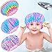 🍭【Double Layer Waterproof】Toddler reusable shower cap is fully lined to protect hair from water keep kids hair dry and protected while you shower or bath. Which is more durable than single-layered, one long service life and reusable.