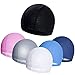 QUANLITY FABRIC SWIM CAP: Waterproof fabric swim cap are made of knitted fabric(inside) and PU-coating (outside), they are lightweight and durable in use. Fabric swim cap for women men are breathable and comfortable to wear.