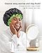 🏁 Washable & Reusable: Advanced color fixing technology on the outer satin fabric ensures the shower cap will not fade during the shower. Don't worry about the colors that will bleed onto the skin. Made of high-quality polyester and EVA fabric, the large shower cap is eco-friendly, skin-friendly, super breathable, washable, and reusable.
